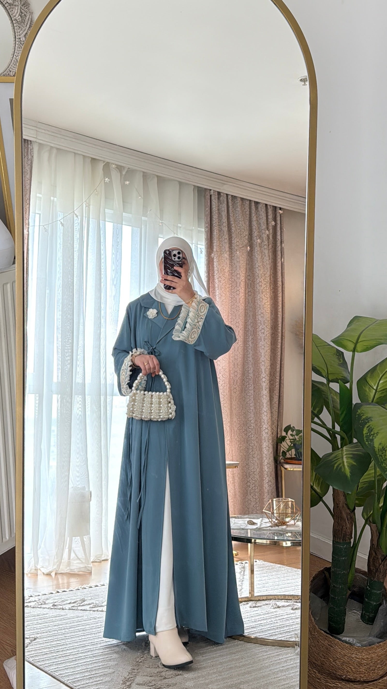 الاستايل بتاعها كورازيه ومطرزه بتطريز فخم بارز